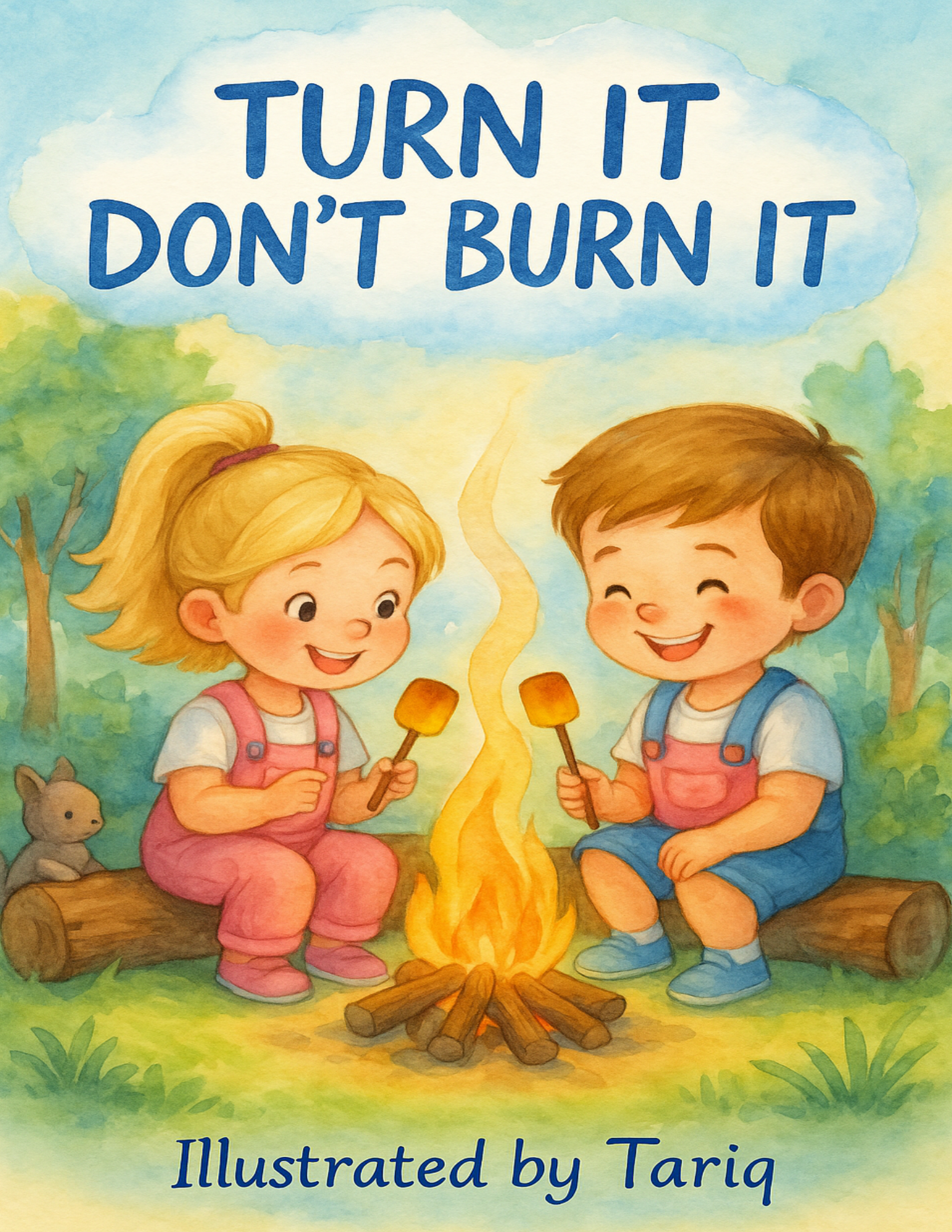 Turn It Don’t Burn It is a delightful children’s picture book illustrated in a warm watercolor style.